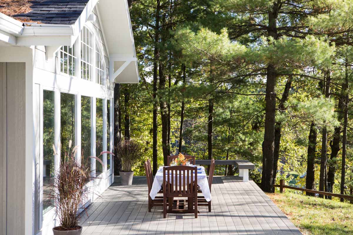 TimberTech Composite™ Terrain Collection em STONE ASH® com CLASSIC COMPOSITE SERIES RADIANCERAIL em branco